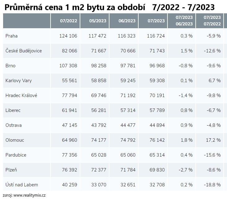 Pro zajímavost nabízíme pohled na srovnání vývoje cen nemovitostí za poslední rok ve vybraných krajských městech. V meziročním srovnání realitního portálu RealityMIX.cz sledujeme pokles prodejní ceny m² bytu.