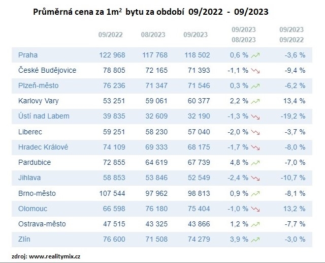 V meziročním srovnání realitního portálu Reality MIX.cz sledujeme prodejní ceny 1 bytu.